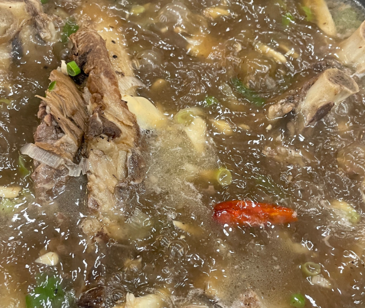 공룡갈비만큼 큰 살코기가 검은 능이에 녹아 부드럽게 뜯기며, 고기를 다 먹은 후에는 밥을 넣어 능이죽을 만들고, 칼국수를 넣어 능이칼국수로 마무리합니다. 흙내음, 풀내음, 꽃내음이 어우러진 능이의 독특한 향이 혀를 사로잡습니다.