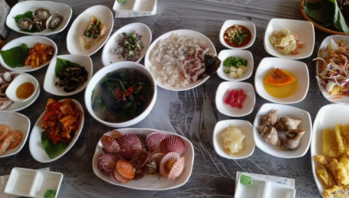 1박 3식이 제공되는 이 민박집의 식사는 아침부터 시작해 눈과 입을 즐겁게 합니다. 첫 식사는 신선한 홍합 미역국과 노릇하게 구워진 생선구이로 시작됩니다. 이 미역국은 거제 앞바다에서 자란 미역과 홍합으로 끓여 깊고 진한 국물이 특징입니다. 생선구이 또한 거제 바다에서 막 잡아 올린 신선한 생선을 사용해 바삭하면서도 속은 촉촉한 맛을 자랑합니다. 이 아침 식사는 활기찬 하루를 시작하는 데 필요한 에너지를 가득 채워줍니다.