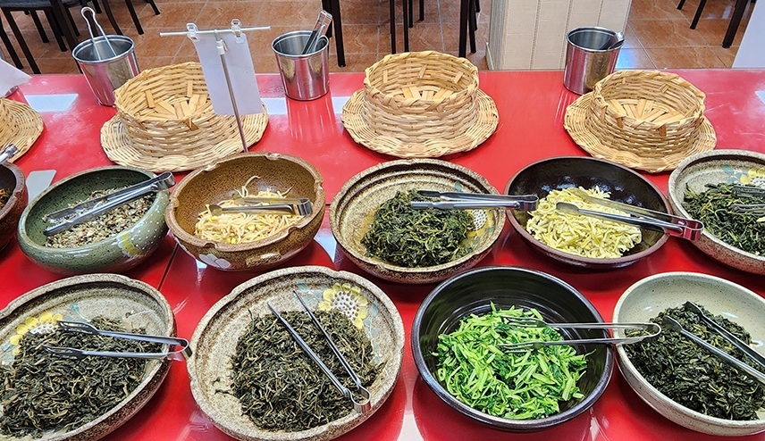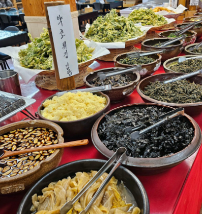 중간에 반찬이 부족해질 걱정 없이, 별도로 마련된 반찬 대기실에서 신선한 반찬을 언제든지 추가로 즐길 수 있습니다. 각각의 나물은 저마다 독특한 맛을 지니고 있어, 한 끼 식사로 수십 가지의 색다른 맛을 경험할 수 있는 것이 이곳의 매력입니다.