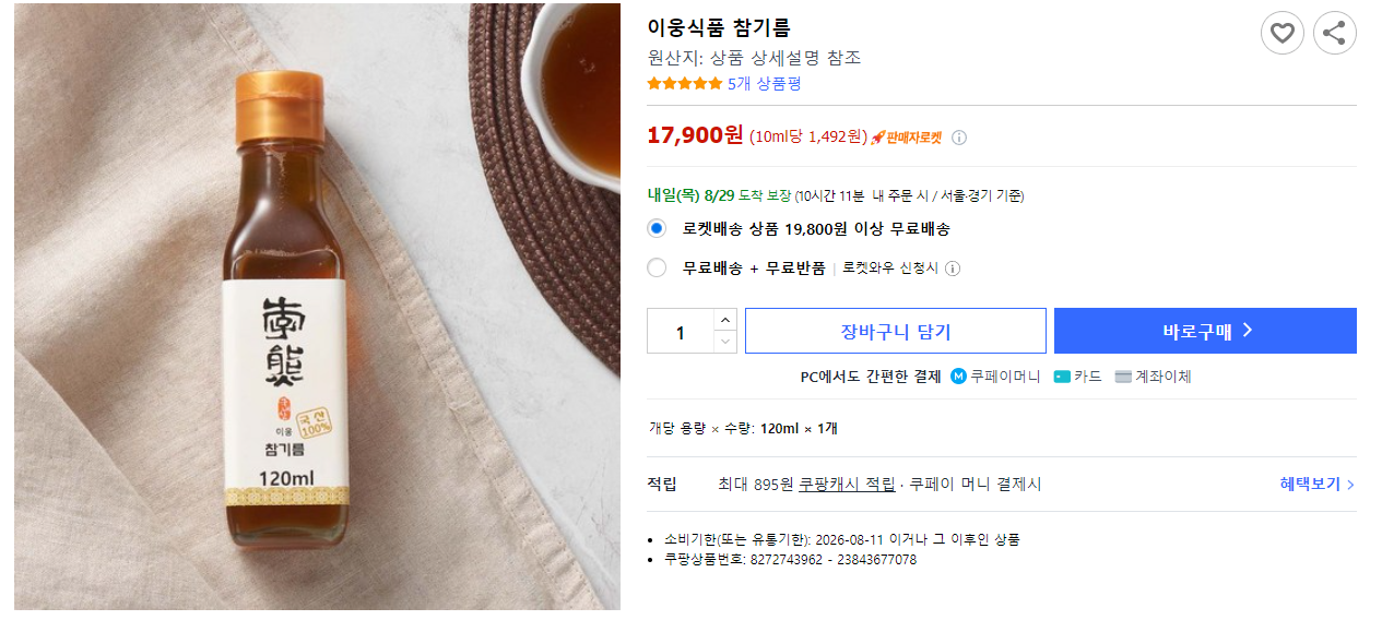 해남 참기름 문의) 이웅식품