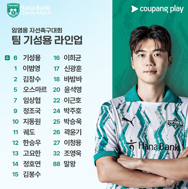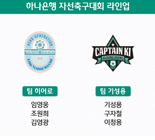 '팀 히어로'는 임영웅을 필두로, 전 축구 선수 조원희와 성남 FC의 전설적인 골키퍼 김영광 등 다양한 축구인들이 함께 출전합니다. 연예계와 스포츠계를 대표하는 멤버들이 팀을 이루어 화려한 경기력을 선보일 것으로 기대됩니다. 반면 '팀 기성용'은 전 국가대표팀 주장 기성용을 중심으로, 제주 유나이티드의 구자철, 울산 HD FC의 이청용 등 현역 선수들이 합류해 강력한 라인업을 자랑합니다.