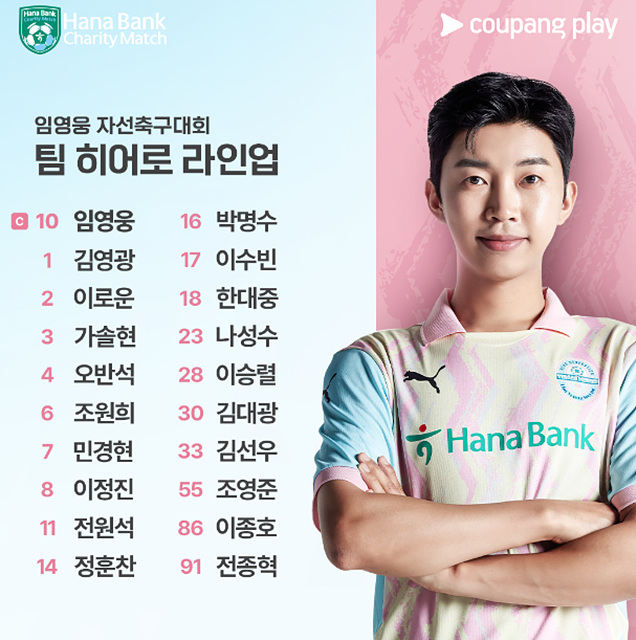 가수 임영웅은 평소 축구에 대한 남다른 열정으로 유명합니다. 학창 시절 축구 선수를 꿈꿨을 정도로 축구를 사랑했으며, 현재는 '리턴즈FC'를 직접 운영하며 꾸준히 경기를 즐기고 있습니다. 방송에서도 여러 차례 축구 실력을 선보였고, 뛰어난 플레이를 보여준 바 있습니다. 이번 대회에서는 그가 주장으로 나서 '팀 히어로'를 이끌며, 직접 그라운드에 서게 될 예정입니다. 임영웅의 출전은 많은 팬들에게 큰 기대감을 불러일으키고 있습니다.