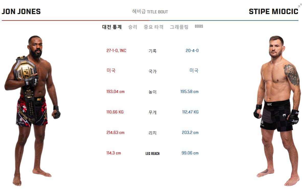 [헤비급 타이틀전] C 존 존스 vs #8 스티페 미오치치