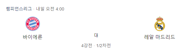 바이에른 뮌헨 레알 마드리드 챔피언스리그 4강 중계아래를 통해서 중계 시청 하시기 바랍니다