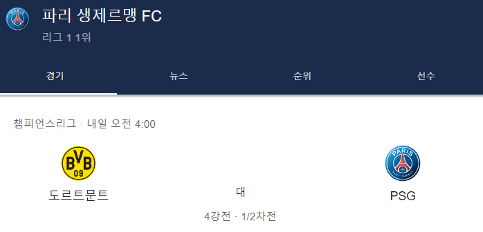 psg 도르트문트 중계 챔피언스리그 4강