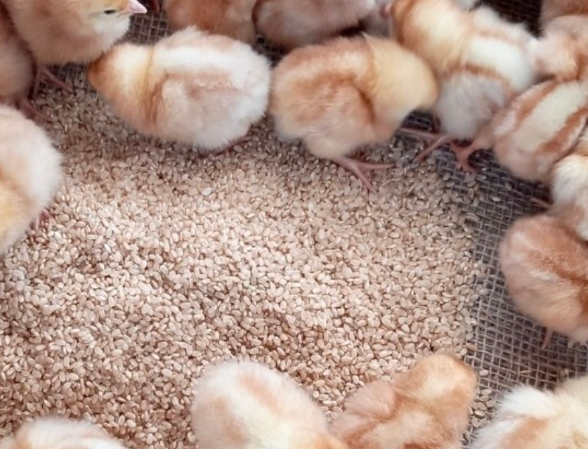 또한 특히 콩비지는 성석동에서 국산콩을 사용하는 음식점에서 가져와서 20일 이상 유산 발효시켜서 사용한다고 하는데요 모든 재료들은 저녁 때 혼합한 후 아침 6시30분 경 한번 공급한다고 합니다 전체사료 중 30%는 오전과 오후에 각각 한번 씩 야생초를 주는데, 농장 주변의 질경이, 쑥, 왕고들빼기 등의 야생초를 10~15cm 잘라서 바닥에 골고루 뿌려준다고 합니다 자연육추의 방법으로 풀을 먹는 훈련을 시키는 것이라고 합니다