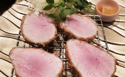 돈가스를 처음 접할 때, 단 6피스만 제공되는 것에 약간의 실망을 느낄 수도 있습니다. 하지만, 각 피스가 두껍게 썰린 고기로 인해 놀라울 정도로 포만감을 제공합니다. 이 돈가스의 튀김은 겉은 바삭하고 내부는 놀라울 정도로 부드러운데, 이는 식사의 재미를 극대화합니다. 돈가스를 더욱 맛있게 즐길 수 있도록 소금, 고추냉이, 겨자, 그리고 전통 돈가스 소스와 같은 다양한 소스가 기본으로 제공됩니다.