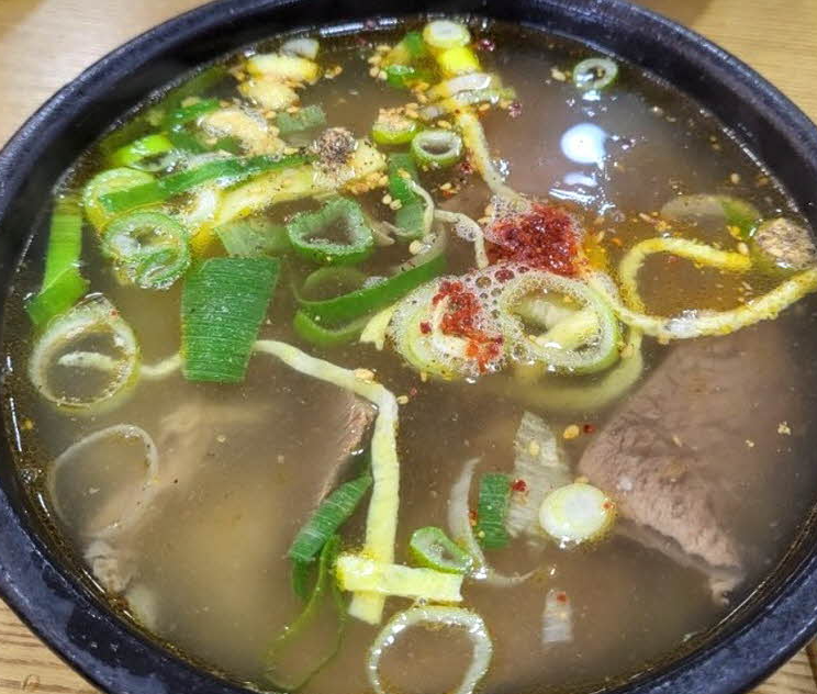 나주 곰탕 전문점에서 웨이팅을 하고 먹게 되는데 이곳은 50년 전통을 자랑하며 삼대에 걸쳐 운영되고 있습니다. 가마솥에서 푹 고아낸 국물은 엄선된 한우 고기로 만든 육수를 사용하며, 화학조미료 없이 고기 본연의 맛을 살리기 위해 끊임없이 노력하고 있습니다. 이곳에서는 곰탕과 환상적인 궁합을 자랑하는 김치와 깍두기도 직접 담가 제공합니다.