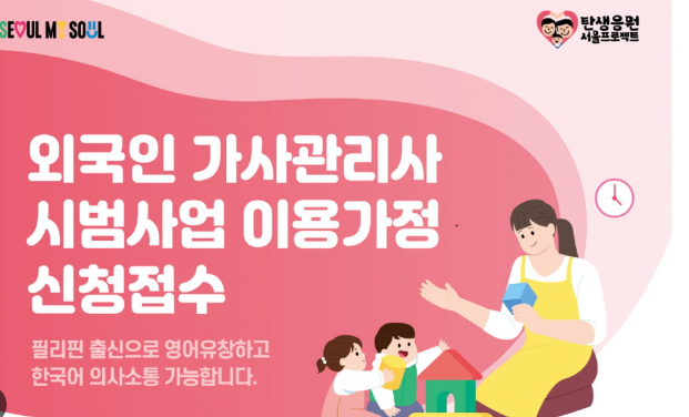 정부가 추진하는 외국인 가사관리사 시범사업의 본격 개시를 앞두고 100명의 필리핀 근로자들이 이번 주 한국에 옵니다. 비전문취업비자(E9) 자격으로 입국하는 필리핀 가사관리사들은 한국 문화, 가사 관리, 아이돌봄 실무 등의 교육을 진행한 후 9월부터 돌봄 현장에 투입될 예정입니다.이번 필리핀 가사관리사 이모님 신청 접수 하시기 바랍니다