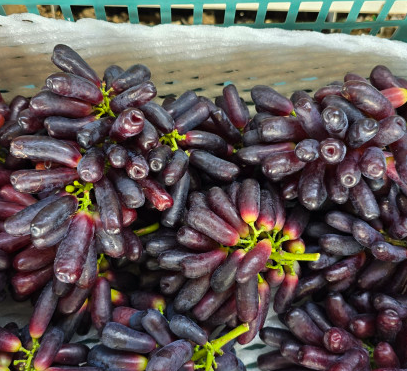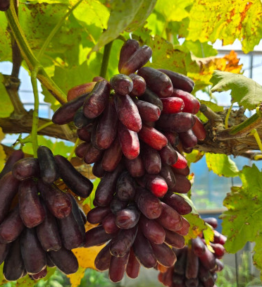 이 포도는 크고 길쭉한 관 모양에 끝부분이 보조개처럼 들어간 독특한 외형을 가지고 있으며, 아삭아삭한 식감이 특징입니다. 씨가 없고 껍질째 먹을 수 있으며, 당도는 인기 많은 샤인 머스킷과 비슷합니다.