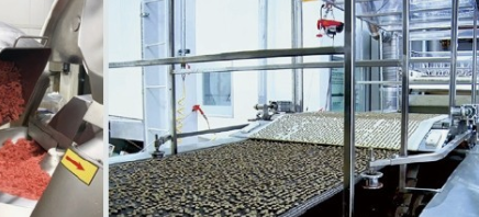 제조 공정은 사료관리법에 명시된 멸균·살균처리 조건을 준수합니다. 키블 사료 알갱이들은 뉴매틱시스템(공기이송방식)으로 이송하여 교차오염이나 이물질 투입을 방지합니다. 또한, HACCP 인증 관리 기관에 의해 사료관리법 내 살균·멸균의 열처리 사항을 CC(위해 요소 중점관리기준)로 관리하며, 주기적인 검증과 분석을 진행합니다.