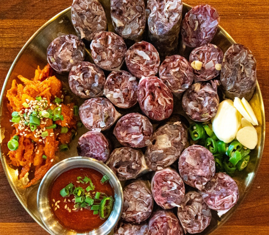 선지로만 만드는 경우 변비가 우려될 수 있지만, 비계와 채소를 섞었으므로 변비 완화 효과도 있습니다. 또한 마늘, 생강, 후추 등의 재료가 잘 배합되어 비린내 제거도 잘되며, 가축의 피가 포함되어 있어 소장에서 흡수가 용이한 철분 공급원으로 빈혈이 우려되는 여성에게 적합한 영양식품입니다.