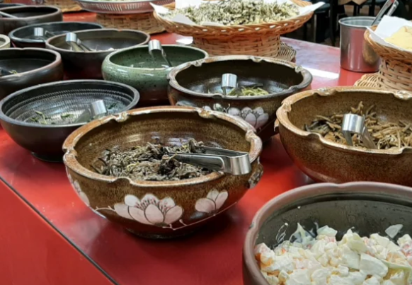 이맘때쯤이 되면 손님들이 이 식당 앞에 줄을 서서 들어가는 모습을 쉽게 볼 수 있습니다. 그 이유는 바로 제철 보약으로 불리는 자연산 나물들을 뷔페식으로 마음껏 맛볼 수 있기 때문입니다. 특히 이 시기에는 봄나물이 풍성하게 자라나는 시기여서, 신선한 나물들을 즐기기 위해 많은 사람들이 이곳을 찾습니다