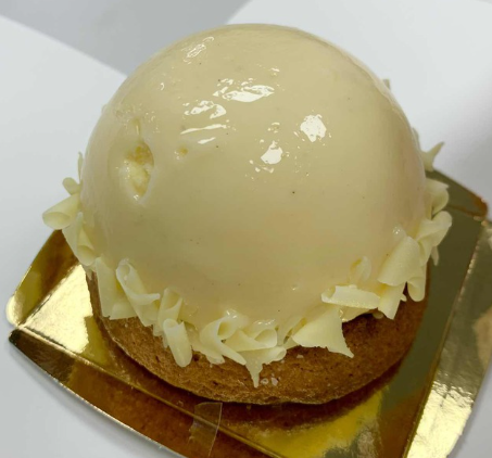 밀가루를 못 드시는 시어머니를 위해 개발한 밀가루 0% 감자 케이크라고 하는데 감자는 푹 삶아 부드럽게 으깨고, 버터크림을 섞어 공기를 많이 넣어 부드러운 식감을 만듭니다. 이 감자 무스를 몰드에 담아 냉동실에서 3시간 굳힌 후, 화이트 초콜릿으로 만든 글라사쥬를 입혀 당도를 높이고 케이크의 내부가 마르지 않게 합니다. 여기에 아몬드 100%로 만든 다쿠아즈 시트에 감자 무스를 올려 부드러움과 바삭함의 완벽한 조합을 이룹니다. 화이트 초콜릿으로 달콤함을 더한 이 특별한 디저트입니다.