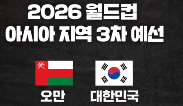 대한민국 오만 축구 중계 는 아시아 3차 예선 입니다