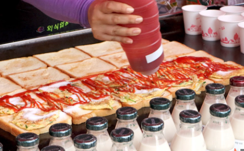 특히 이곳의 주인공인 달인은 철판 위에서 식빵을 완벽하게 구워낸 후, 빨간 케첩과 설탕을 화려하고 능숙한 손놀림으로 뿌리는 퍼포먼스를 선보입니다. 이러한 모습은 손님들로 하여금 감탄을 자아내게 만들며, 맛뿐만 아니라 볼거리까지 제공하는 이곳은 동묘 구제시장 방문의 필수 코스로 자리 잡았습니다.