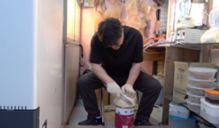 흑채는 빈 머리카락을 간편하게 가릴 수 있는 인기 제품으로, 사용은 간단하지만 제조 과정은 결코 쉽지 않습니다. 천연 흑채를 만들기 위해, 약재를 넣고 반나절 동안 40~50℃에서 끓이며 염액을 추출합니다. 이어서 원하는 색상의 흑채를 얻기 위해 염액과 레이온 분말을 섞는 교반 작업을 여러 번 반복해야 합니다. 이 과정에서 작업자들은 지속적으로 땀을 흘리며 힘든 작업을 견뎌내야 합니다. 또한, 100kg의 흑채를 생산하기 위해서는 100번의 탈수 과정을 거치고, 완벽한 건조와 멸균을 위해 건조 작업은 두 차례에 걸쳐 진행됩니다. 한 달이라는 긴 시간과 노력을 들여 천연 흑채가 완성됩니다.
