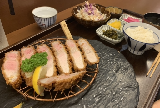 돈가스를 처음 접할 때, 단 6피스만 제공되는 것에 약간의 실망을 느낄 수도 있습니다. 하지만, 각 피스가 두껍게 썰린 고기로 인해 놀라울 정도로 포만감을 제공합니다. 이 돈가스의 튀김은 겉은 바삭하고 내부는 놀라울 정도로 부드러운데, 이는 식사의 재미를 극대화합니다. 돈가스를 더욱 맛있게 즐길 수 있도록 소금, 고추냉이, 겨자, 그리고 전통 돈가스 소스와 같은 다양한 소스가 기본으로 제공됩니다.