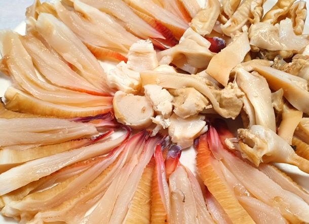 코끼리 조개는 손질이 까다롭지만, 52년 동안 거제 성포항에서 식당을 운영해 온 김정숙 씨의 손에 들어가면 완벽하게 해체됩니다. 김정숙 씨는 거제를 방문한 지역 주민들을 위해 이 조개를 아름답게 솜씨 좋게 준비하여 제공합니다. 그 결과, 접시 위에 마치 꽃이 피어난 듯한 아름다운 코끼리 조개 한 상이 완성됩니다. 이 조개의 담백하고 쫄깃한 맛은 먹는 이의 젓가락을 멈추지 못하게 합니다.