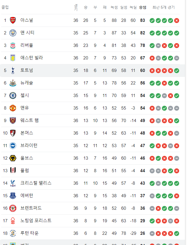 토트넘 홋스퍼는 UEFA 챔피언스리그 진출을 목표로 하고 있으나 현재 5위(승점 60)에 머물러 있습니다. 4위인 아스톤 빌라(승점 67)와의 격차는 7점입니다. 아직 가능성은 남아 있습니다. 토트넘과 아스톤 빌라는 각각 3경기와 2경기를 남겨 두고 있는 상황에서, 토트넘이 잔여 경기에서 최소 2승 1무를 거두고, 빌라가 연속 패배를 할 경우, 토트넘은 4위 자리를 차지할 수 있습니다.